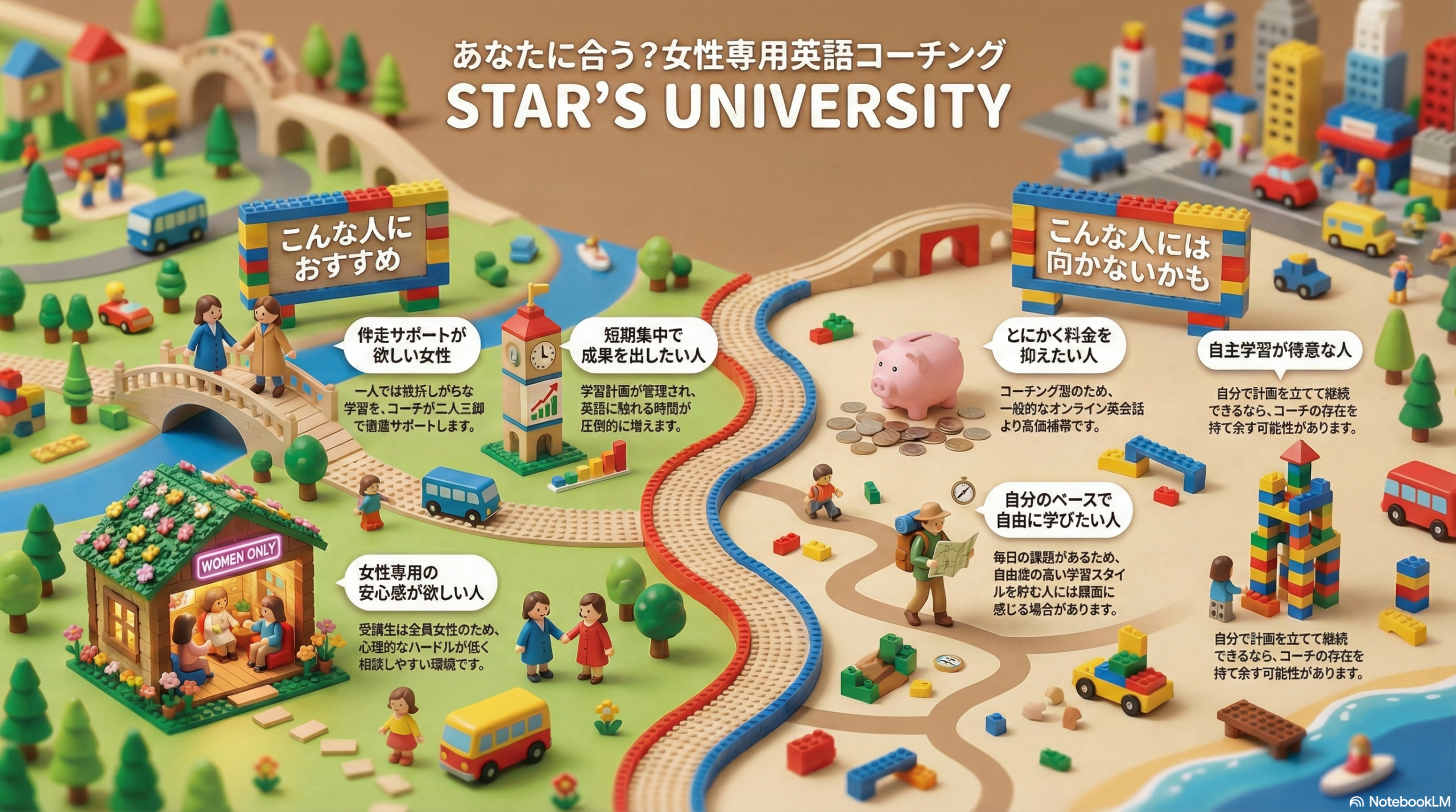 このように、英語、学習、コーチング、スクールという要素をすべて活用したい女性には、STAR’S UNIVERSITYは有力な選択肢となります。そこで次に、逆に向かない人の特徴を整理します。